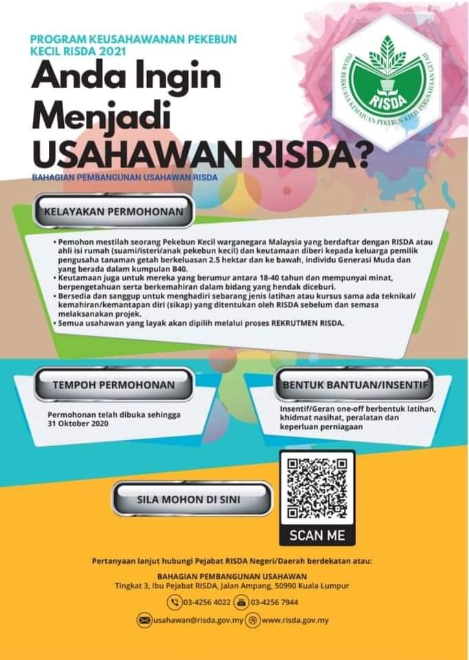 Jika YA! Anda boleh terus ke Pejabat RISDA berhampiran untuk membuat temujanji berkaitan Bantuan Musim Tengkujuh 2020. Pastikan anda memenuhi syarat yang ditetapkan:-